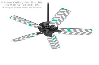 Chevrons Gray And Turquoise - Ceiling Fan Skin Kit fits most 52 inch fans (FAN and BLADES SOLD SEPARATELY)