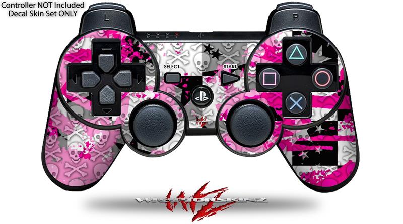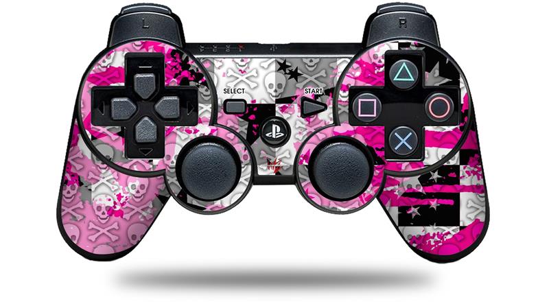 Sony PS3 Controller Decal Style Skin - Checker Skull Splatter Pink (CONTROLLER NOT INCLUDED)