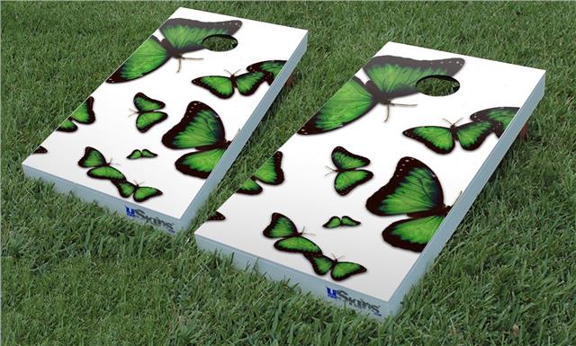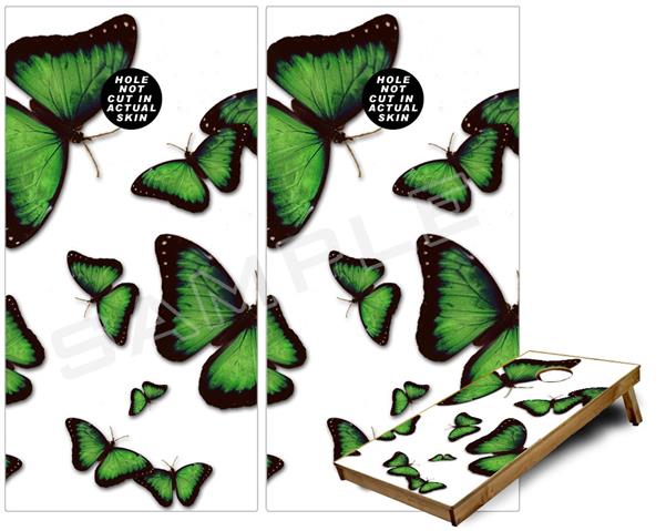 Cornhole Game Board Vinyl Skin Wrap Kit - Premium Laminated - Butterflies Green fits 24x48 game boards (GAMEBOARDS NOT INCLUDED)