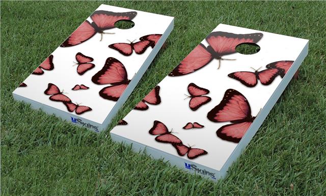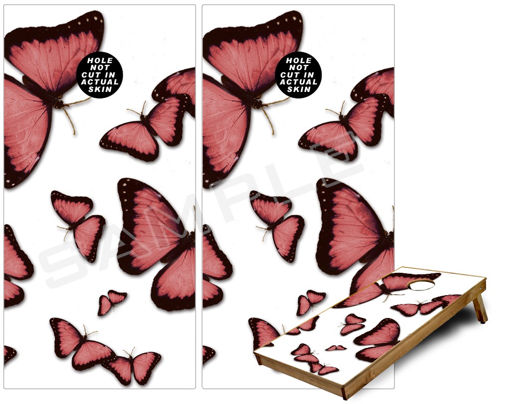 Cornhole Game Board Vinyl Skin Wrap Kit - Butterflies Pink fits 24x48 game boards (GAMEBOARDS NOT INCLUDED)