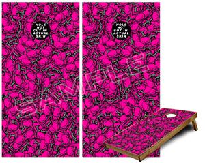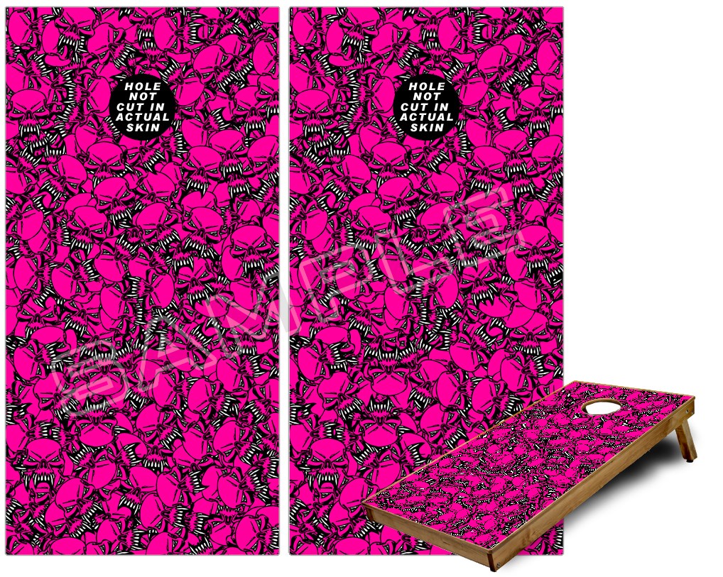 Cornhole Game Board Vinyl Skin Wrap Kit - Scattered Skulls Hot Pink fits 24x48 game boards (GAMEBOARDS NOT INCLUDED)