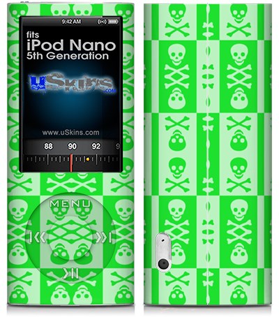 iPod Nano 5G Skin - Skull And Crossbones Pattern Green