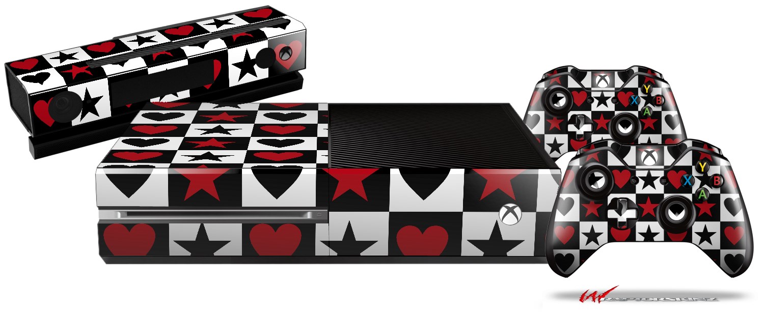 Hearts and Stars Red - Holiday Bundle Decal Style Skin fits XBOX One Console Original, Kinect and 2 Controllers (XBOX SYSTEM NOT INCLUDED)