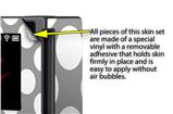 WraptoSkinz™ skins are superb photo quality designs and vibrant colors printed with special Eco-Friendly, fade resistant inks. Our skins are self-adhering flexible vinyl skins that helps prevent scratches. Made of composite, multi-layered commercial grade materials. The bottom layer is made with a special removable adhesive that is easily positioned and applied without air bubbles. We print your design on the bottom layer then bond a professional grade laminate over the entire skin adding a glossy protective finish.