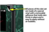 WraptoSkinz™ skins are superb photo quality designs and vibrant colors printed with special Eco-Friendly, fade resistant inks. Our skins are self-adhering flexible vinyl skins that helps prevent scratches. Made of composite, multi-layered commercial grade materials. The bottom layer is made with a special removable adhesive that is easily positioned and applied without air bubbles. We print your design on the bottom layer then bond a professional grade laminate over the entire skin adding a glossy protective finish.