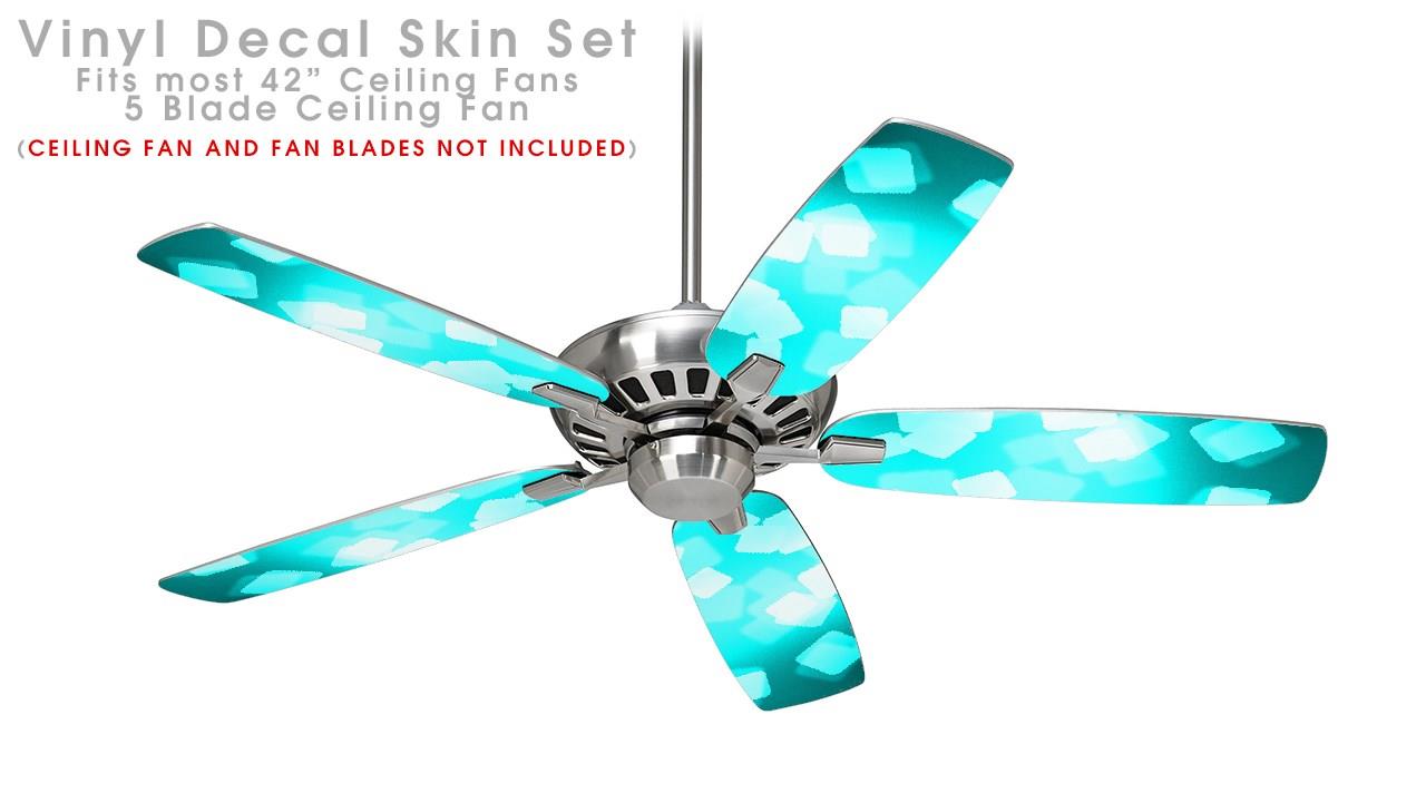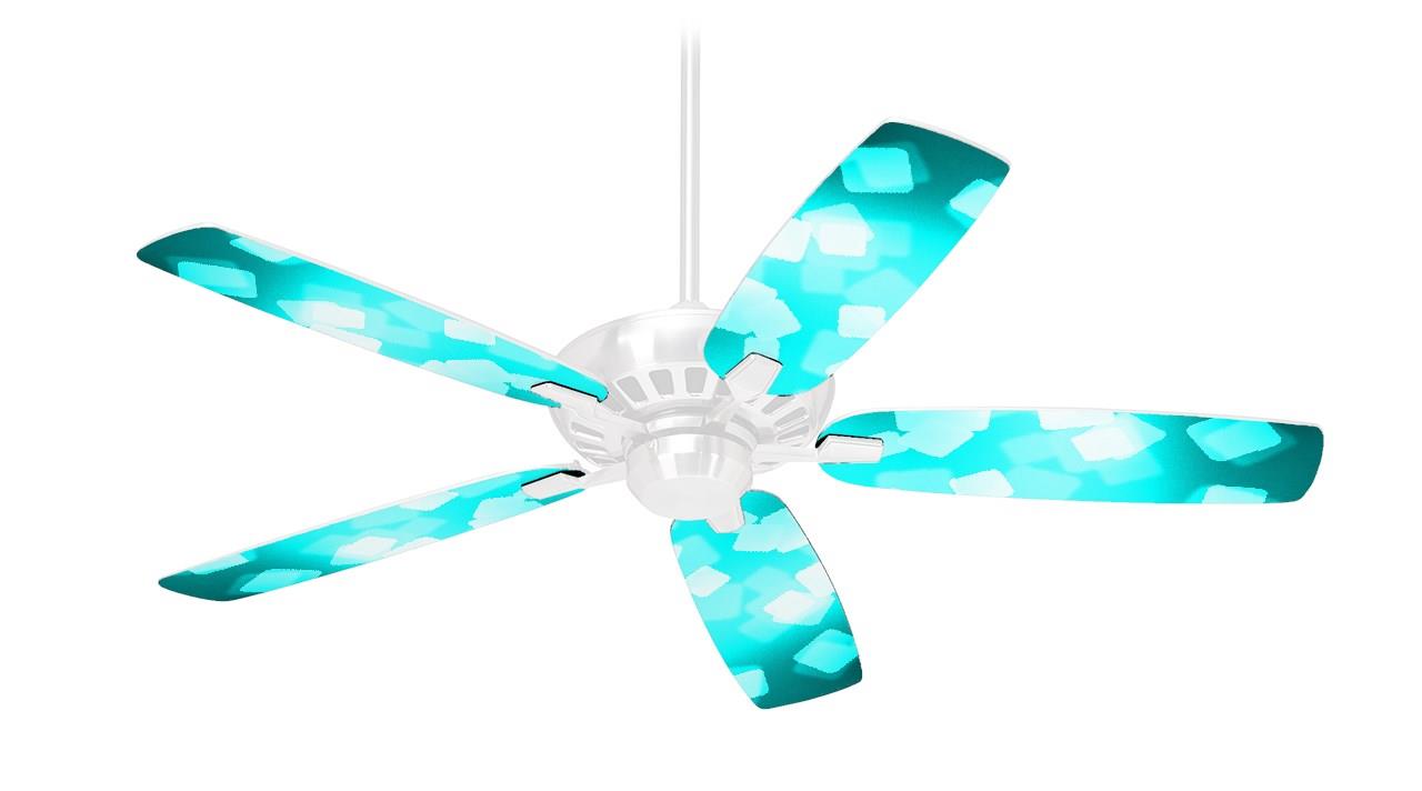 Bokeh Squared Neon Teal - Ceiling Fan Skin Kit fits most 42 inch fans (FAN and BLADES SOLD SEPARATELY)