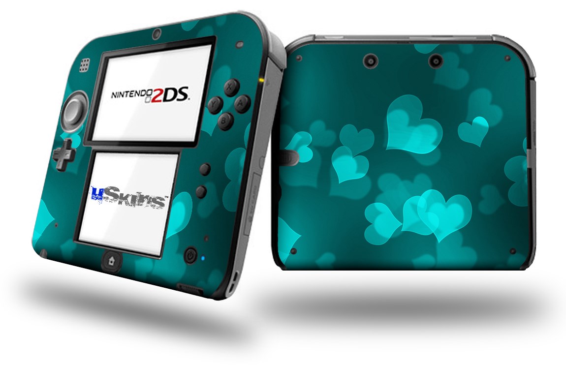 Bokeh Hearts Neon Teal - Decal Style Vinyl Skin fits Nintendo 2DS - 2DS NOT INCLUDED
