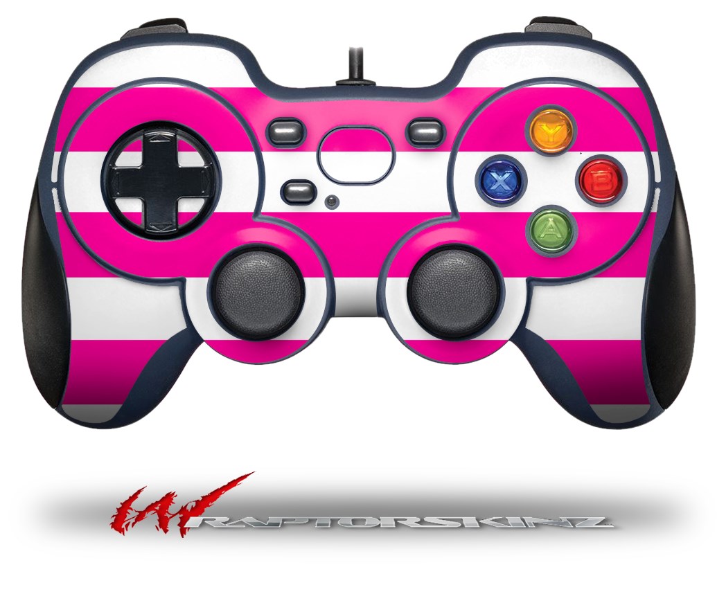 Psycho Stripes Hot Pink and White - Decal Style Skin fits Logitech F310 Gamepad Controller (CONTROLLER SOLD SEPARATELY)