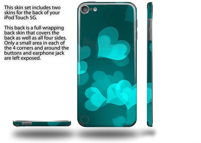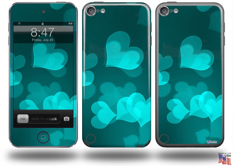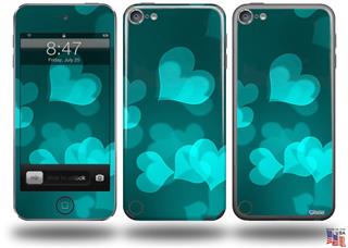 Bokeh Hearts Neon Teal Decal Style Vinyl Skin - fits Apple iPod Touch 5G (IPOD NOT INCLUDED)