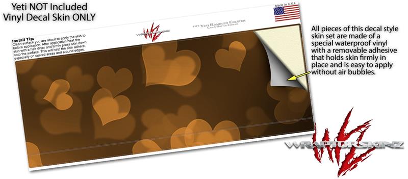 Skin Decal Wrap for Yeti Colster, Ozark Trail and RTIC Can Coolers - Bokeh Hearts Orange (COOLER NOT INCLUDED)