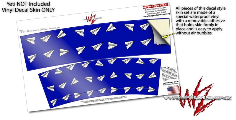 Skin Decal Wrap for Yeti Tumbler Rambler 30 oz Paper Planes Royal Blue (TUMBLER NOT INCLUDED)