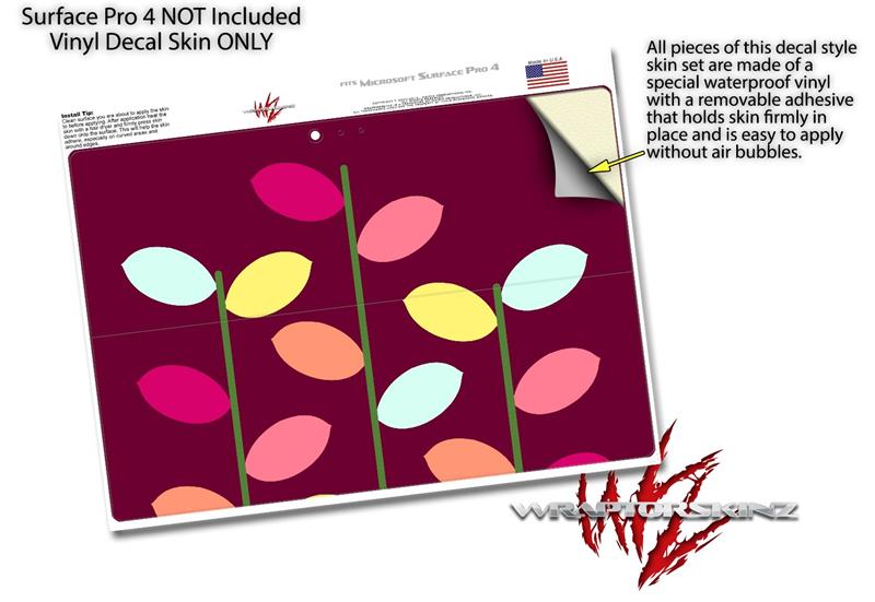 Plain Leaves On Burgundy - Decal Style Vinyl Skin (fits Microsoft Surface Pro 4)