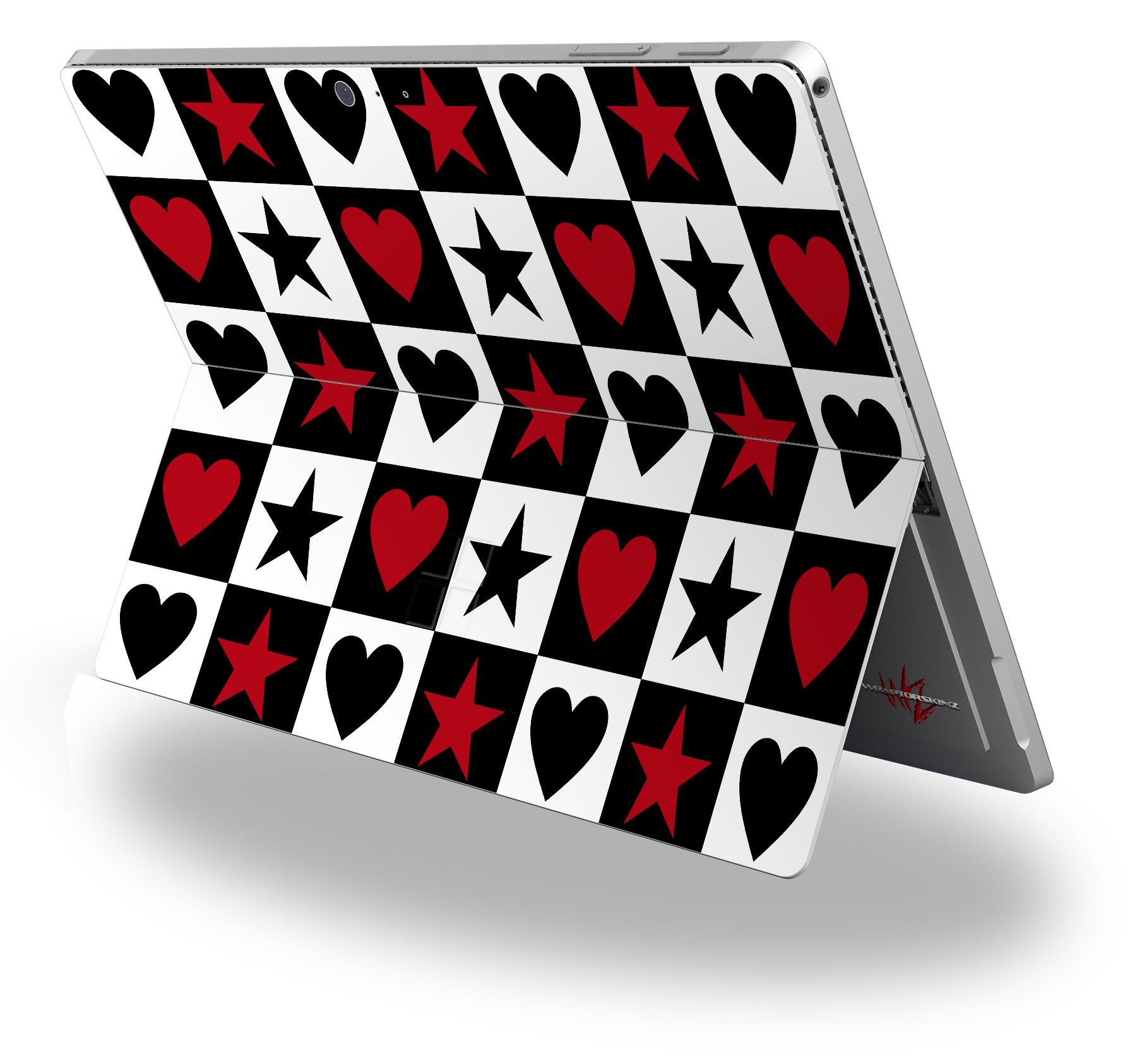 Hearts and Stars Red - Decal Style Vinyl Skin (fits Microsoft Surface Pro 4)