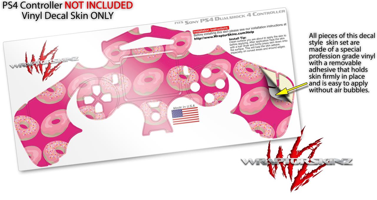 WraptorSkinz Skin compatible with Sony PS4 Dualshock Controller PlayStation 4 Original Slim and Pro Donuts Hot Pink Fuchsia (CONTROLLER NOT INCLUDED)