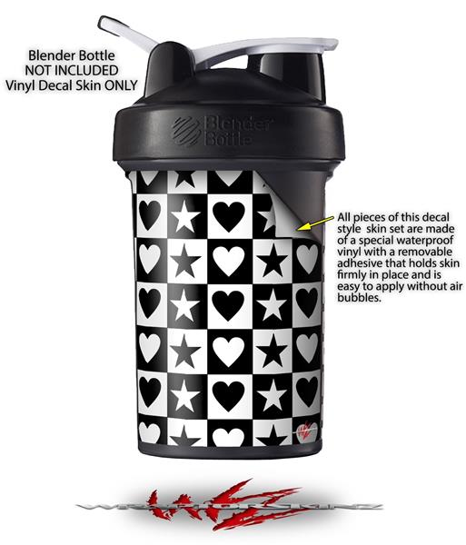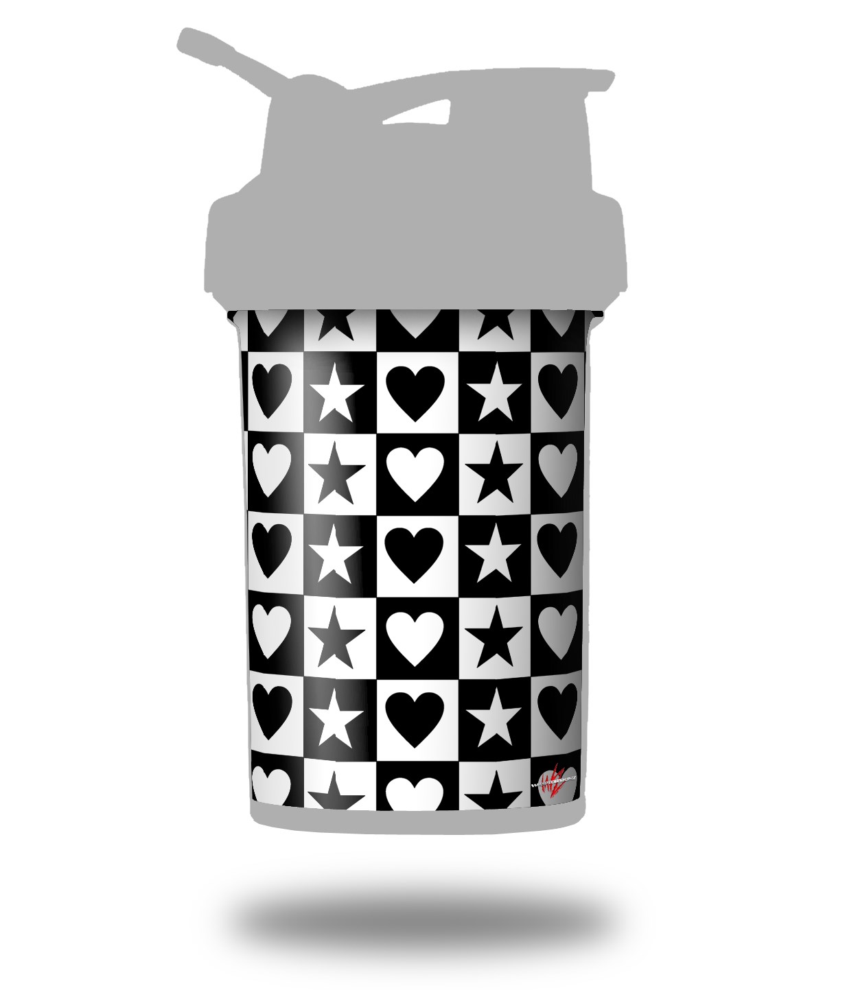 Decal Style Skin Wrap works with Blender Bottle 22oz ProStak Hearts And Stars Black and White (BOTTLE NOT INCLUDED)