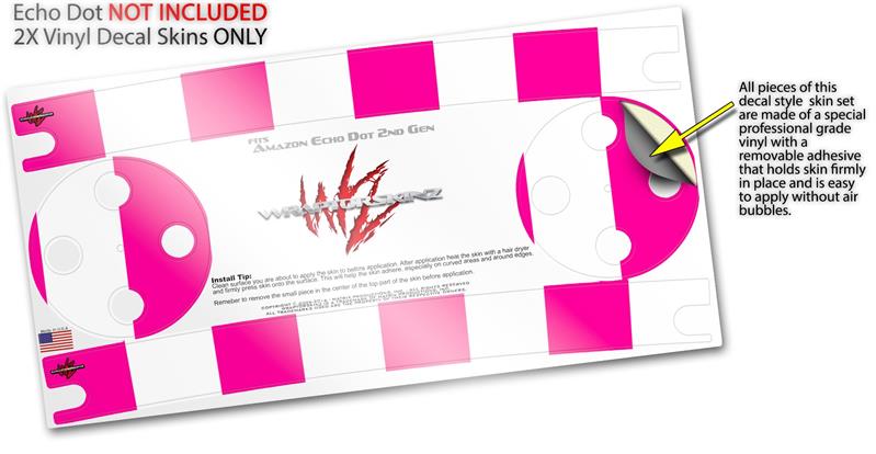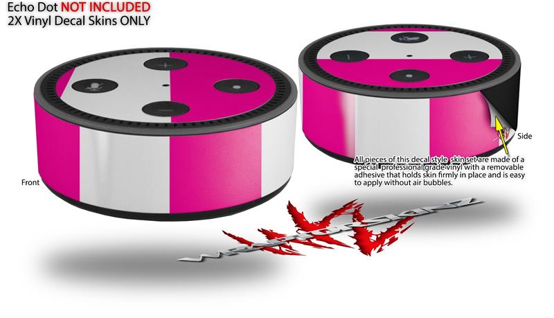 Skin Wrap Decal Set 2 Pack for Amazon Echo Dot 2 - Psycho Stripes Hot Pink and White (2nd Generation ONLY - Echo NOT INCLUDED)