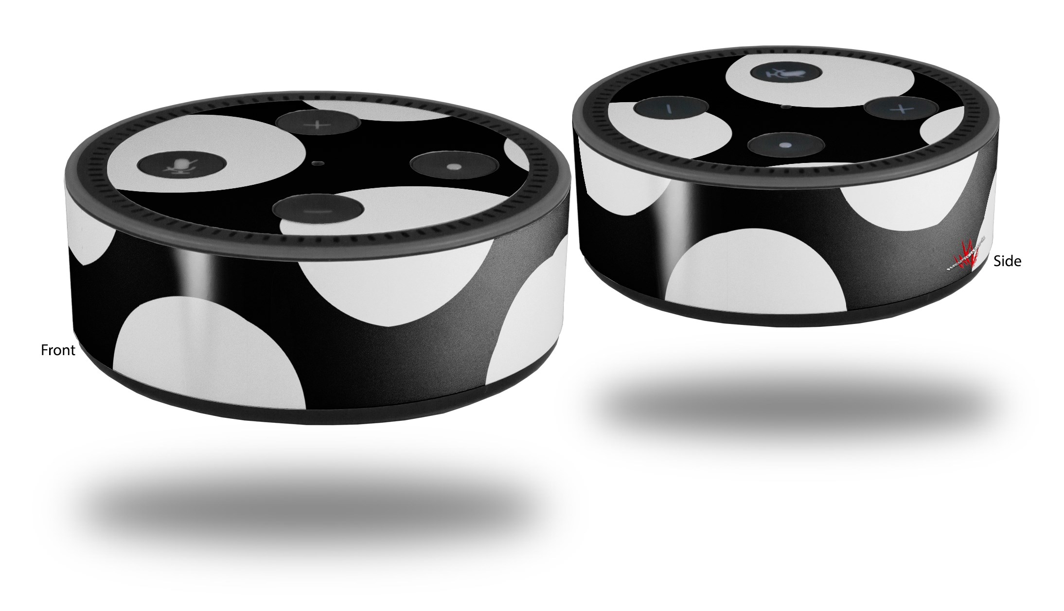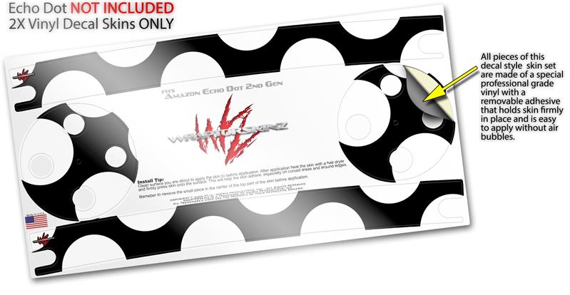 Skin Wrap Decal Set 2 Pack for Amazon Echo Dot 2 - Kearas Polka Dots White On Black (2nd Generation ONLY - Echo NOT INCLUDED)