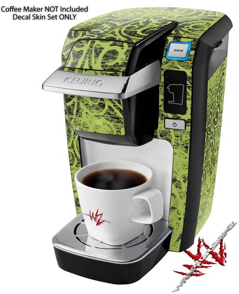 Decal Style Vinyl Skin compatible with Keurig K10 / K15 Mini Plus Coffee Makers Folder Doodles Sage Green (KEURIG NOT INCLUDED)