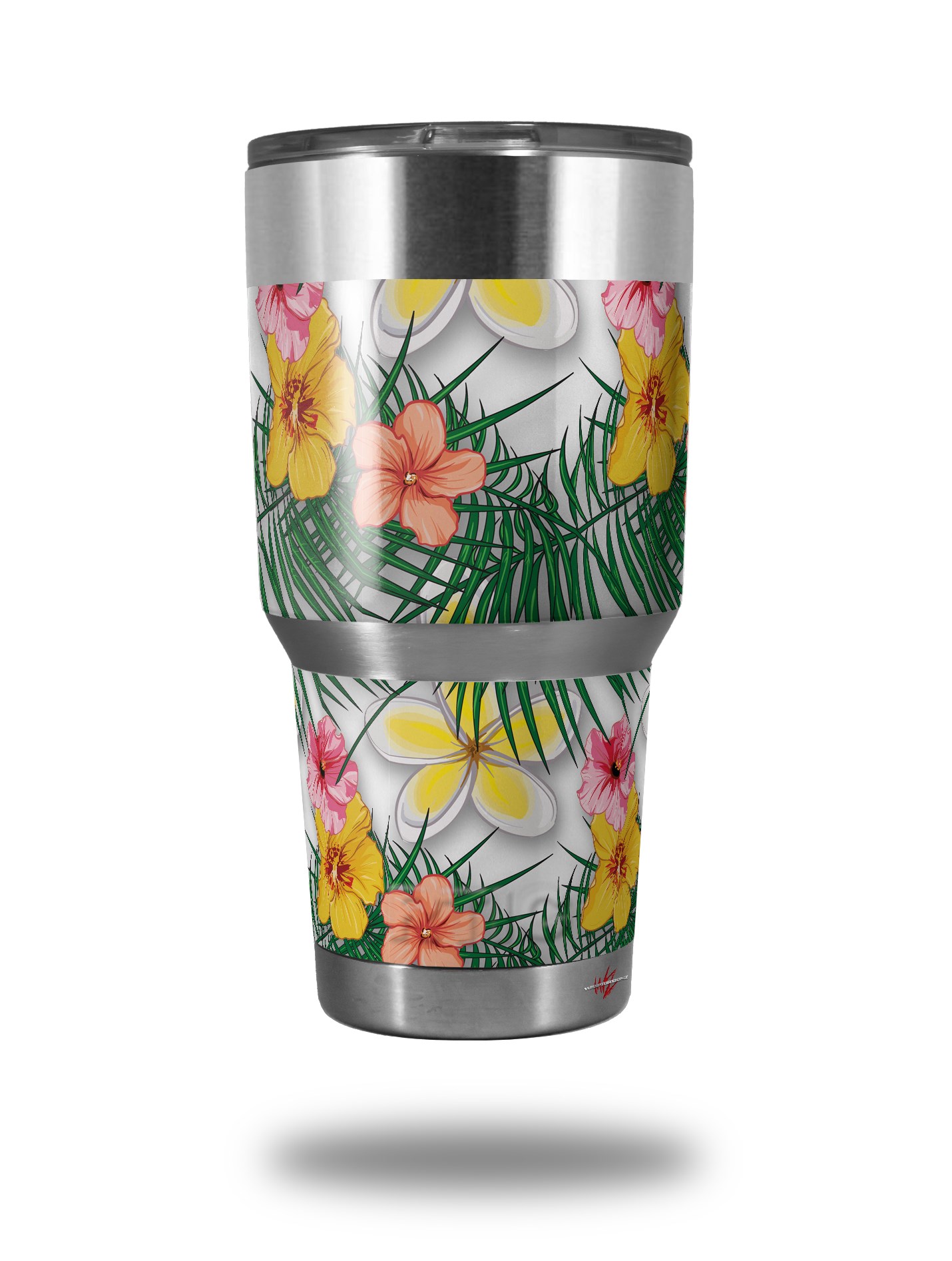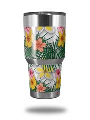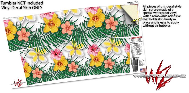WraptorSkinz Skin Wrap compatible with RTIC 30oz ORIGINAL 2017 AND OLDER Tumblers Beach Flowers 02 White (TUMBLER NOT INCLUDED)