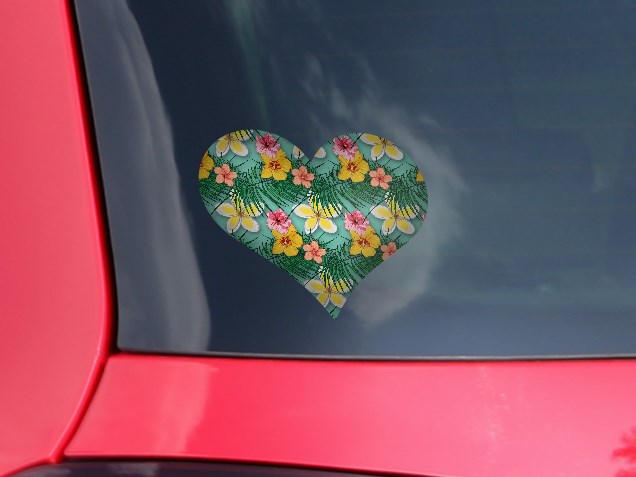 Beach Flowers 02 Seafoam Green - I Heart Love Car Window Decal 6.5 x 5.5 inches