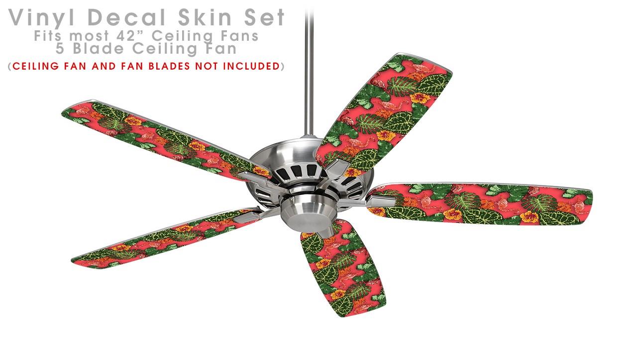 Famingos and Flowers Coral - Ceiling Fan Skin Kit fits most 42 inch fans (FAN and BLADES SOLD SEPARATELY)