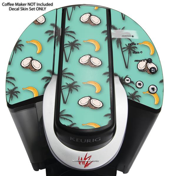 Decal Style Vinyl Skin compatible with Keurig K40 Elite Coffee Makers Coconuts Palm Trees and Bananas Seafoam Green (KEURIG NOT INCLUDED)