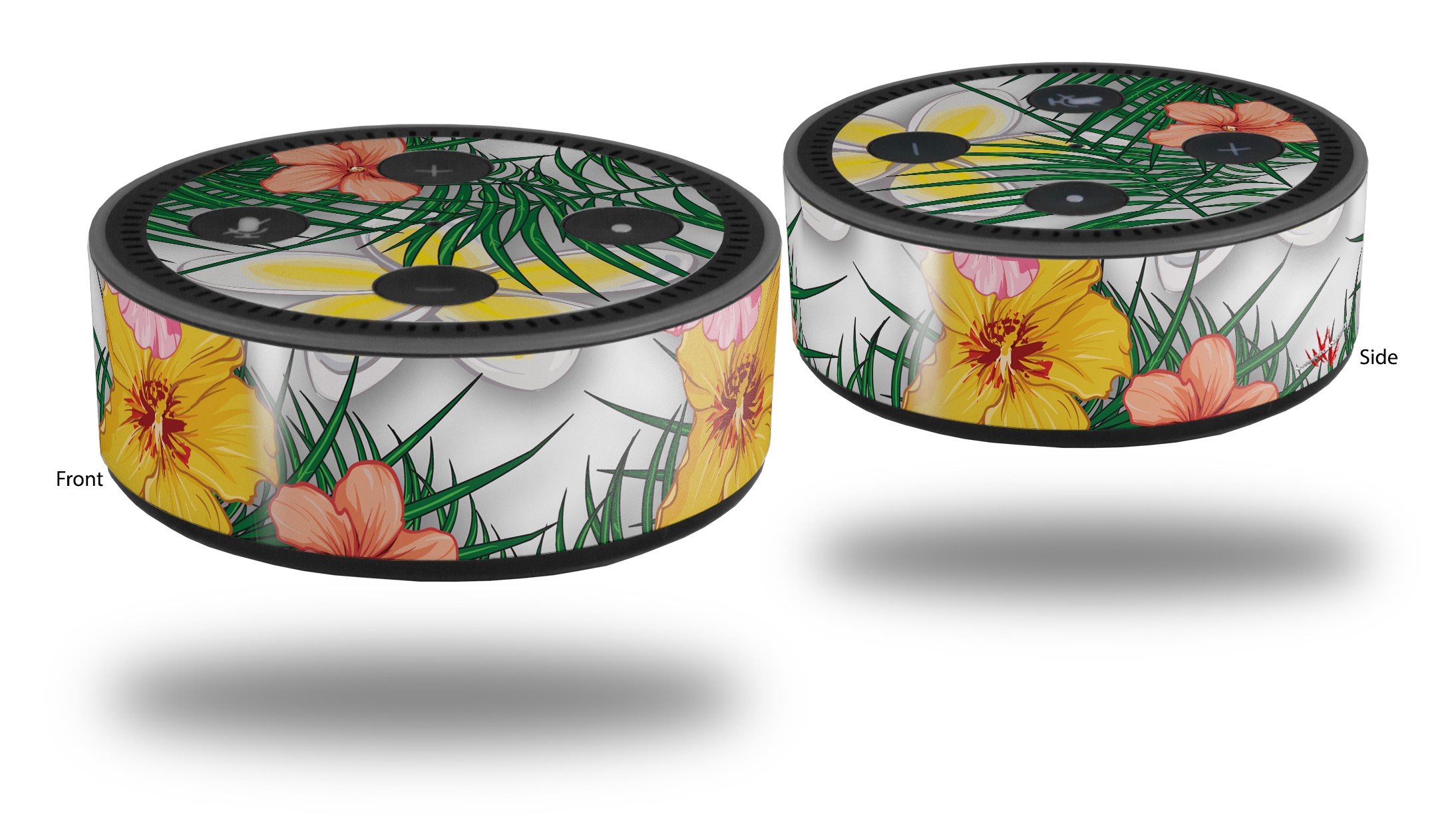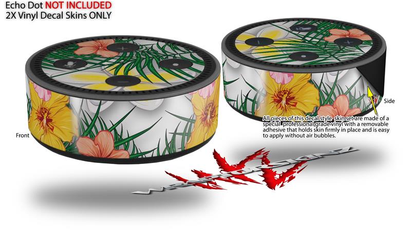 Skin Wrap Decal Set 2 Pack for Amazon Echo Dot 2 - Beach Flowers 02 White (2nd Generation ONLY - Echo NOT INCLUDED)