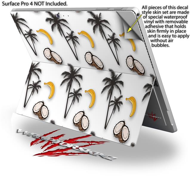 Coconuts Palm Trees and Bananas White - Decal Style Vinyl Skin fits Microsoft Surface Pro 4 (SURFACE NOT INCLUDED)