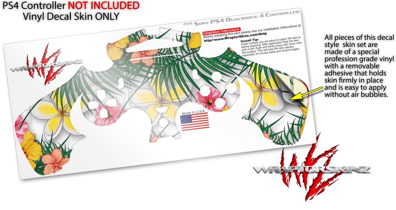 WraptorSkinz Skin compatible with Sony PS4 Dualshock Controller PlayStation 4 Original Slim and Pro Beach Flowers 02 White (CONTROLLER NOT INCLUDED)
