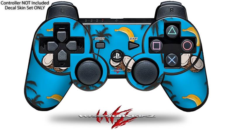 Sony PS3 Controller Decal Style Skin - Coconuts Palm Trees and Bananas Blue Medium (CONTROLLER NOT INCLUDED)