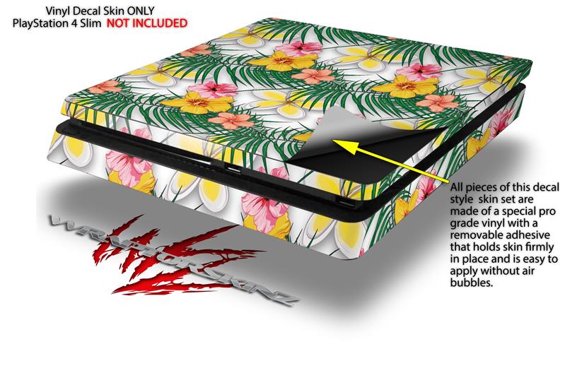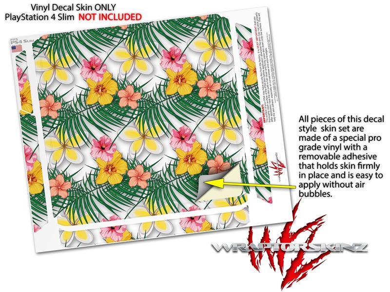 Vinyl Decal Skin Wrap compatible with Sony PlayStation 4 Slim Console Beach Flowers 02 White (PS4 NOT INCLUDED)
