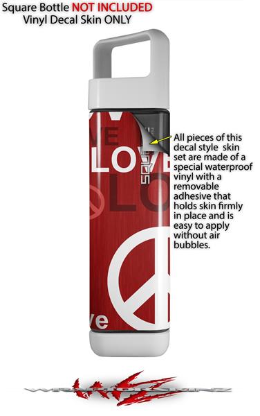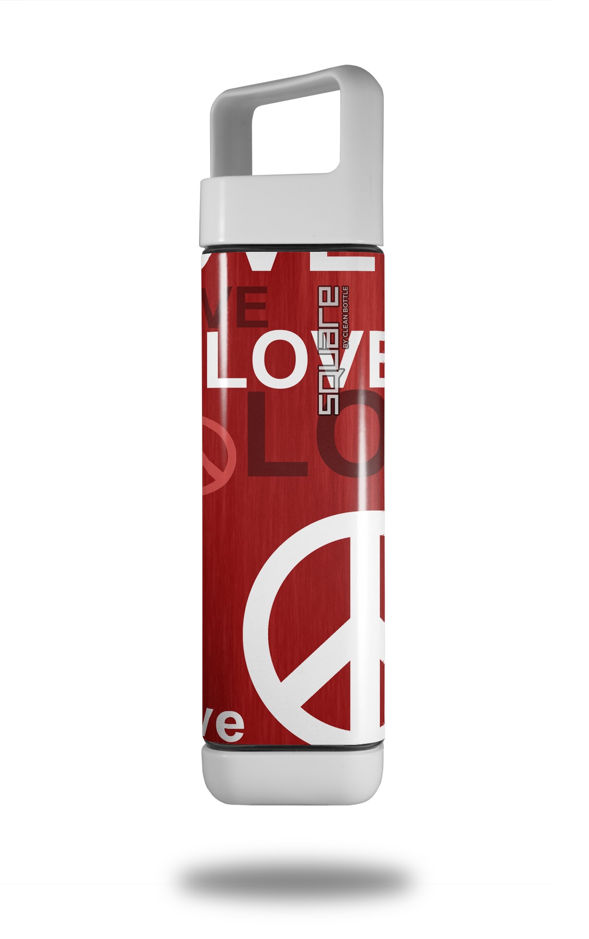 Skin Decal Wrap for Clean Bottle Square Titan Plastic 25oz Love and Peace Red (BOTTLE NOT INCLUDED)