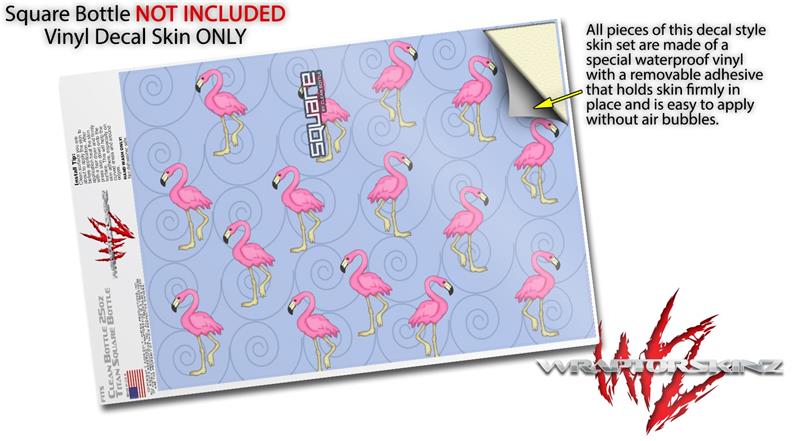 Skin Decal Wrap for Clean Bottle Square Titan Plastic 25oz Flamingos on Blue (BOTTLE NOT INCLUDED)