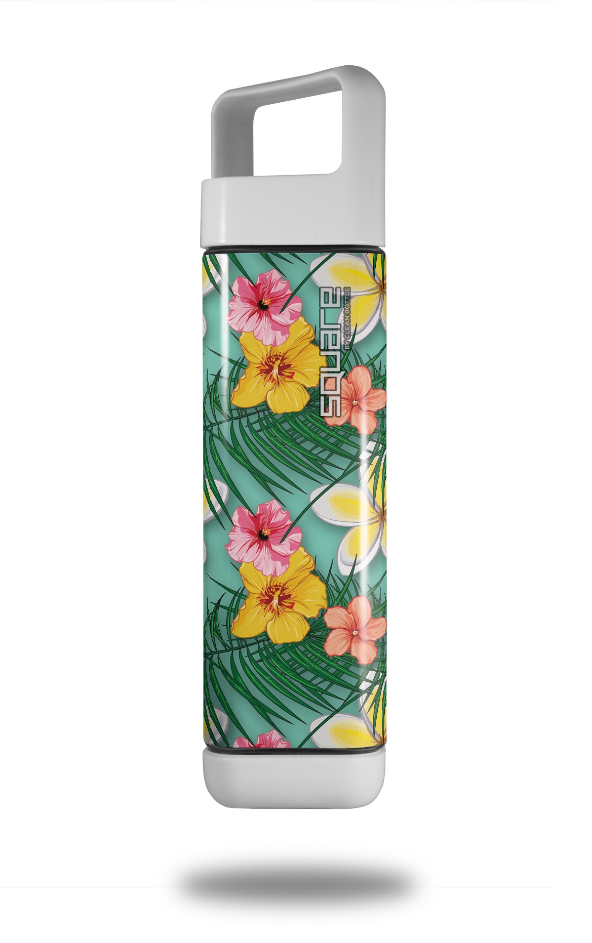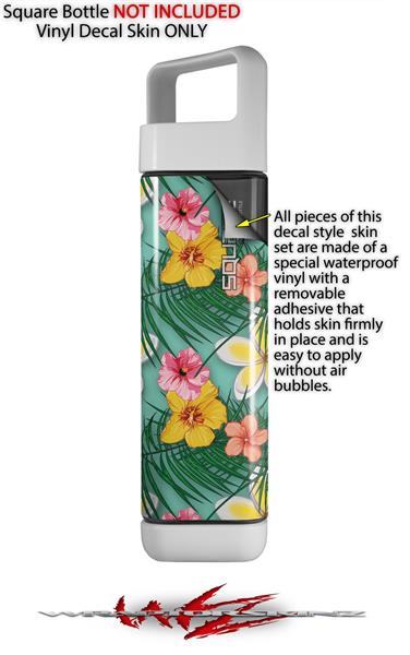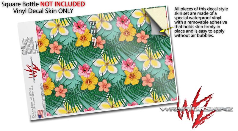 Skin Decal Wrap for Clean Bottle Square Titan Plastic 25oz Beach Flowers 02 Seafoam Green (BOTTLE NOT INCLUDED)