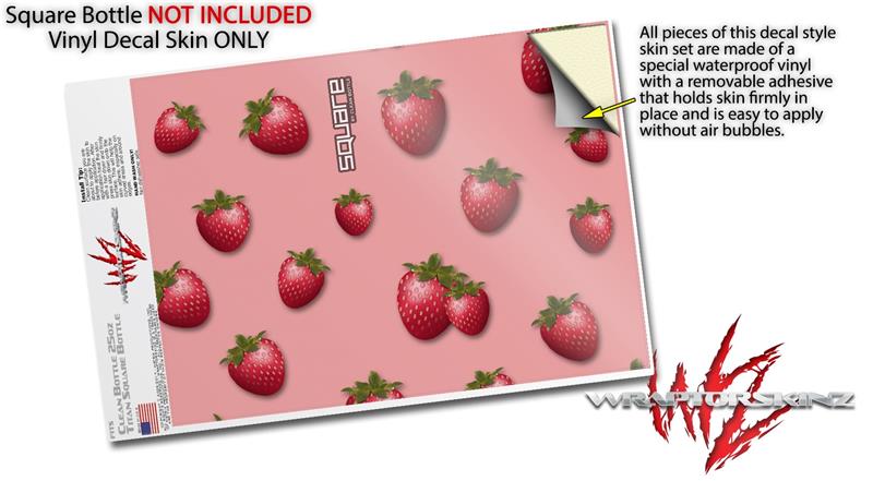 Skin Decal Wrap for Clean Bottle Square Titan Plastic 25oz Strawberries on Pink (BOTTLE NOT INCLUDED)